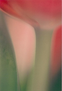 Sein wichtigstes Werkzeug für diese Entdeckungsreise ist ein Objektiv langer Brennweite, eingesetzt im Nahbereich. In Verbindung mit dem Verzicht auf stärkeres Abblenden und damit auf Schärfentiefe erreicht er so genau diese hier gezeigte weiche und flächenhaft wirkende Darstellung. Die Blumen scheinen in Hauptsache aus einem Meer von Farbe zu bestehen, sie wirken außerordentlich zart und empfindlich, und fast lichtdurchlässig. Sie scheinen überhaupt nicht konkret zu existieren; wir finden keinerlei Hinweis auf irgendwelche Größenverhältnisse und Bezüge zur Realität, das Bild ist reine Impression. Zwar handelt es sich hier wirklich um ein fotografisches Bild, es könnte aber genauso gut auch mit anderen künstlerischen Werkzeugen entstanden sein, etwa mit verwischter Kreide oder mit Aquarellfarben.